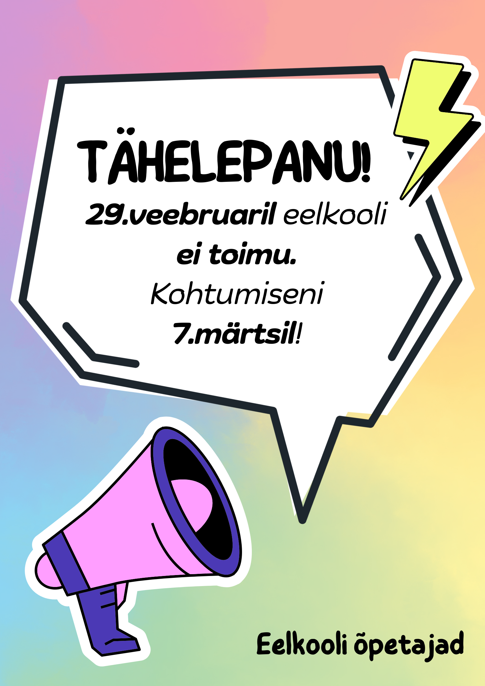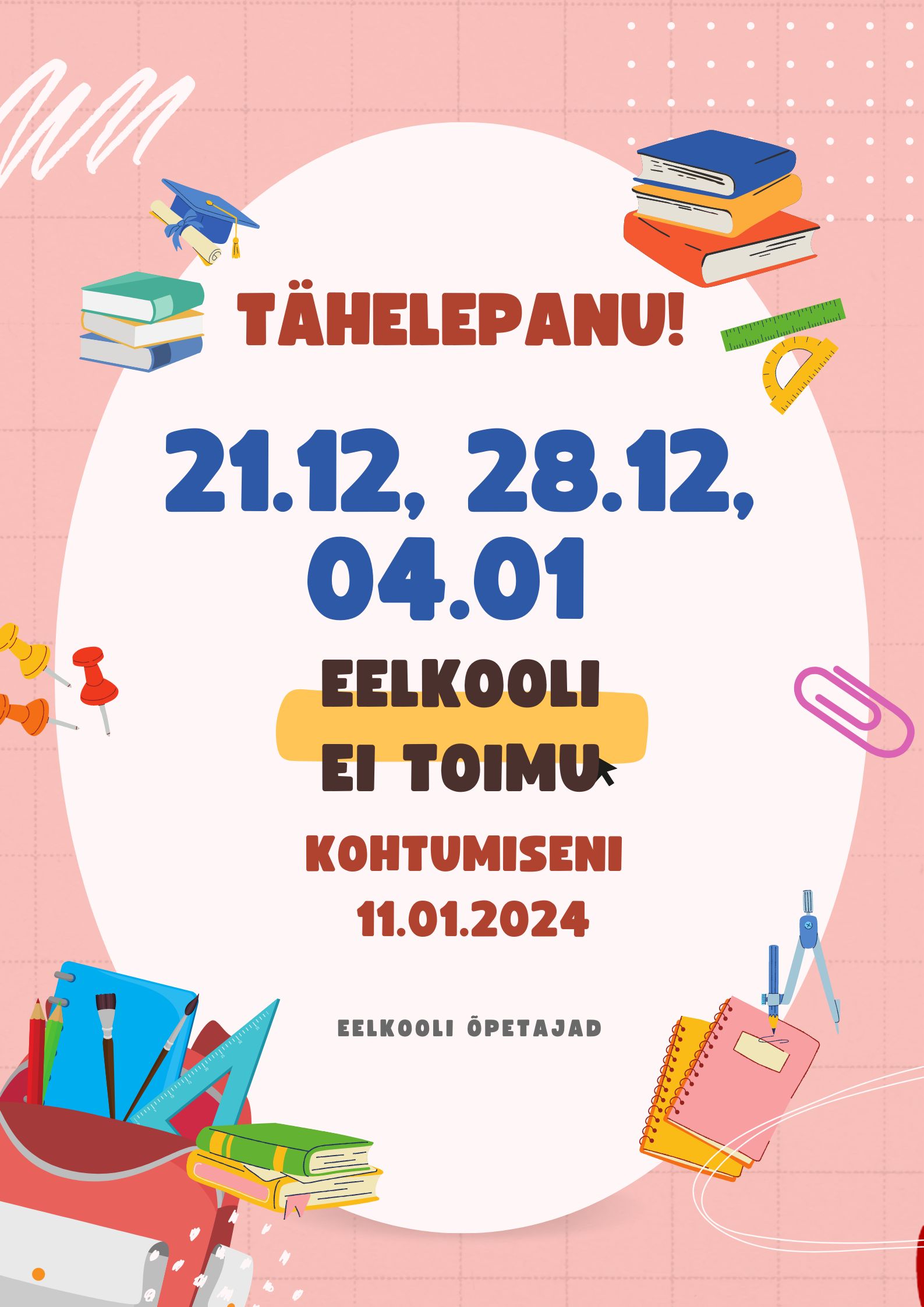 TÄHELEPANU! EELKOOLIINFO