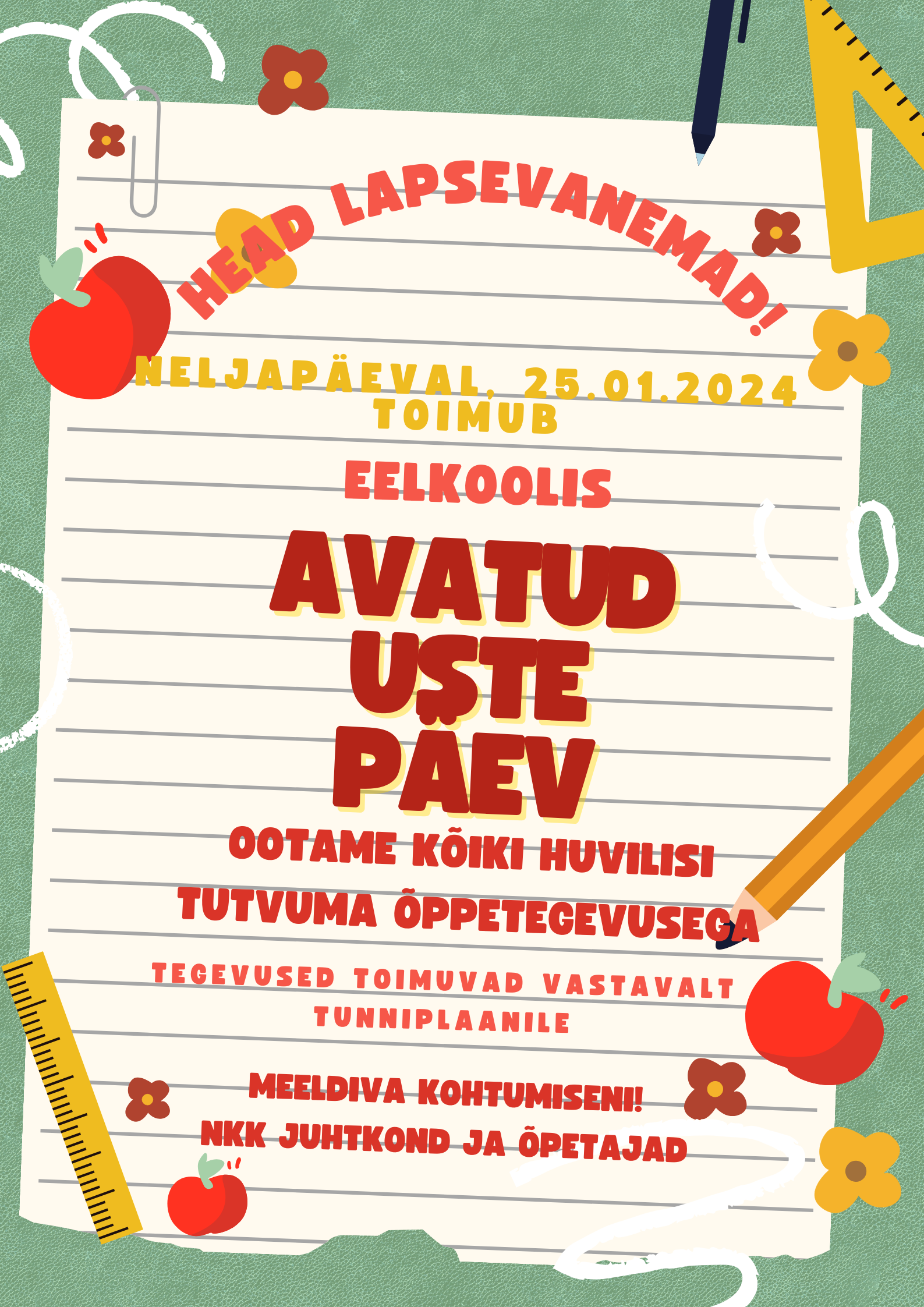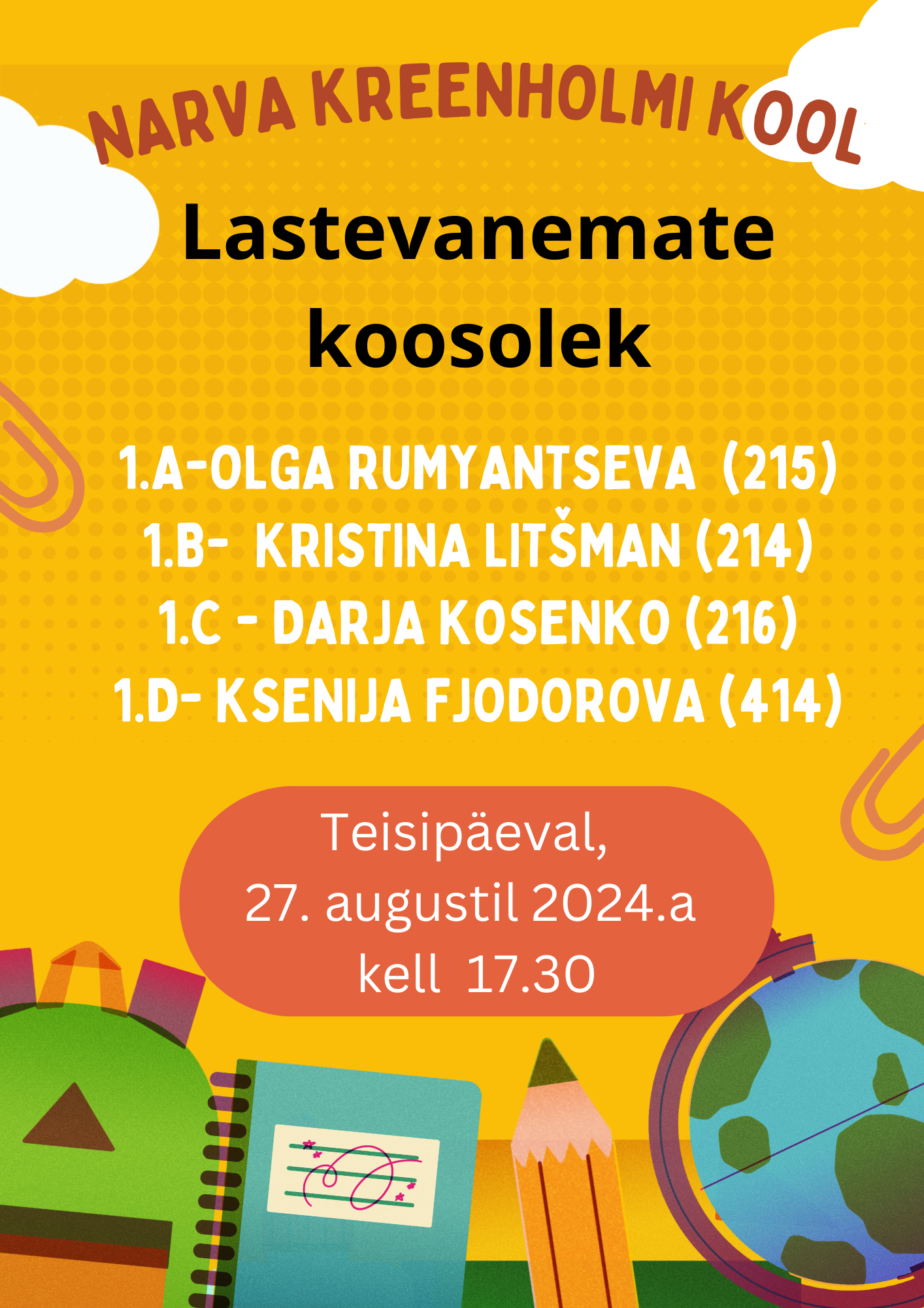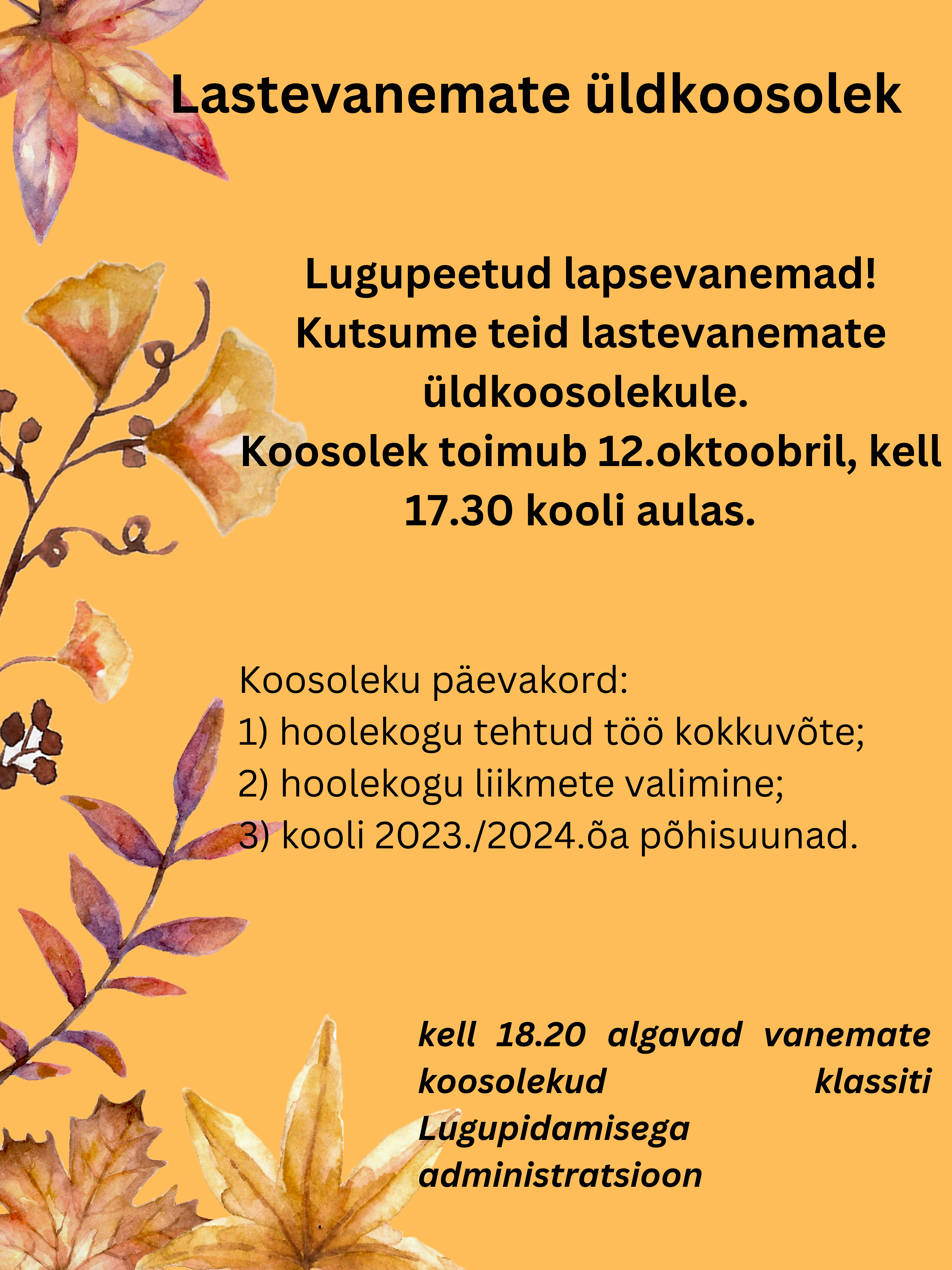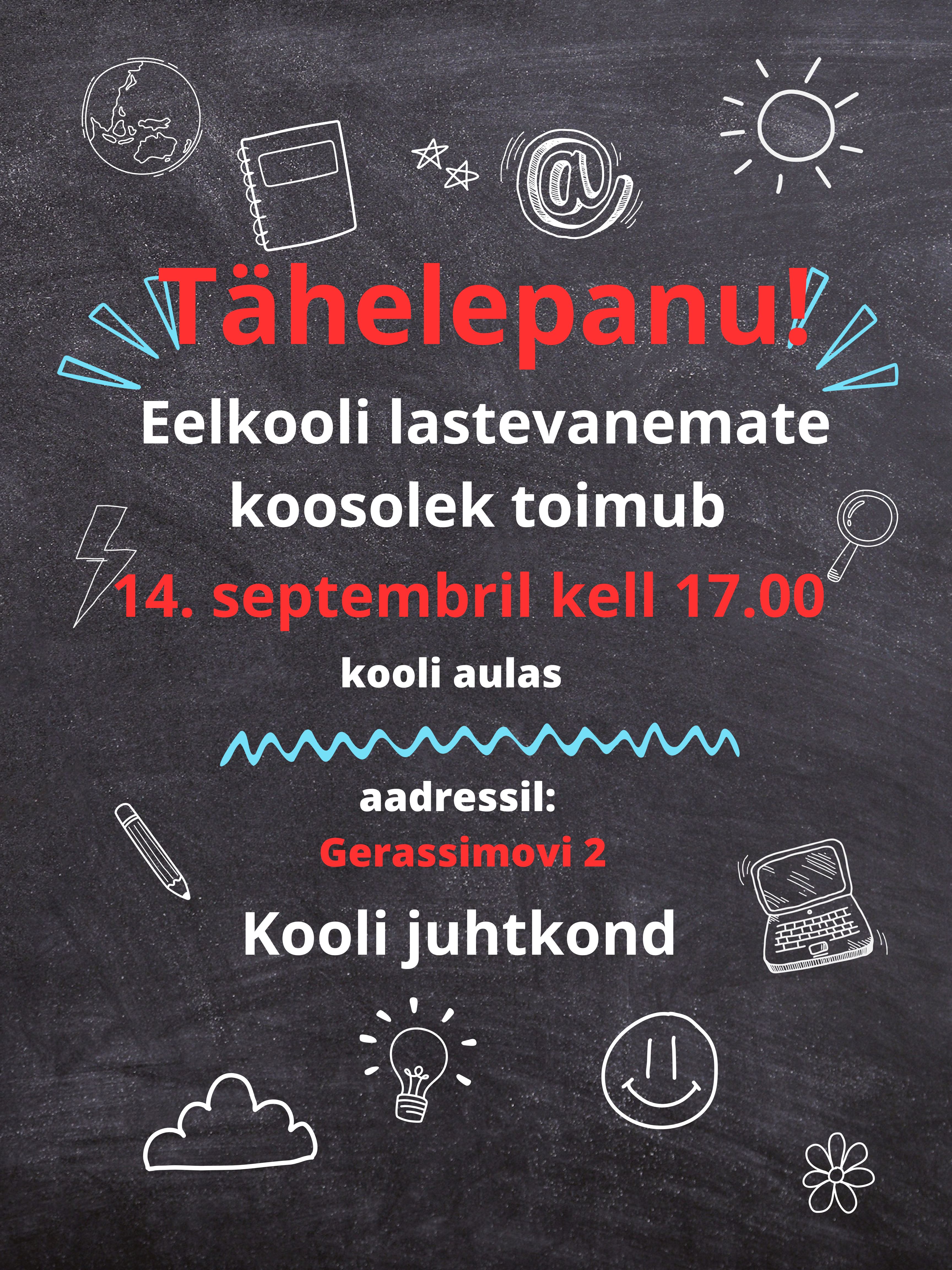 Lastevanemate koosolek 22.augustil 2024.a kell 18.00
